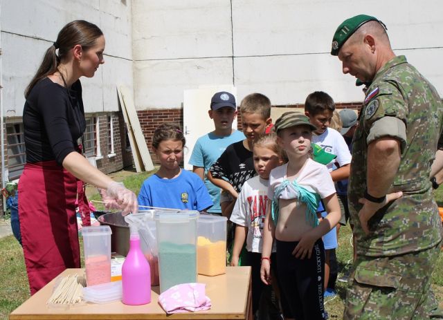 Deti si ako správni vojaci vyskúšali vojenský program v podobe vzdania úcty štátnej hymne, nástupu, rozcvičky, ale aj plazenia, hádzania granátov, nosenia taktickej vesty a prilby. Nechýbalo ani preskúmanie vojenskej techniky BVP2 a vojenského vozidla Tatra, kreslenie bojových zástav či boxerský tréning, v rámci ktorého sa naučili niekoľko hmatov a úderov. Po ňom nasledovala prednáška so zdravotníkom rotným Radovanom Havranom, kde sa deti naučili ako sa používa obväz, meria tep a ako sa pracuje s turniketom.