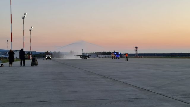 Momentálne je na letisku v Kuchyni už 7 kusov tejto impozantnej techniky. Počas slávnostnej ceremónie privítania lietadiel F-16 bola vytvorená z dvoch automobilov vojenskej hasičskej jednotky takzvaná „slavobrána“, ktorá sa používa ako symbol privítania novej leteckej techniky vo vojenskom útvare. Veliteľ 46. krídla privítal nové lietadla s nadšením, že flotila lietadiel F-16 sa znovu rozrástla.