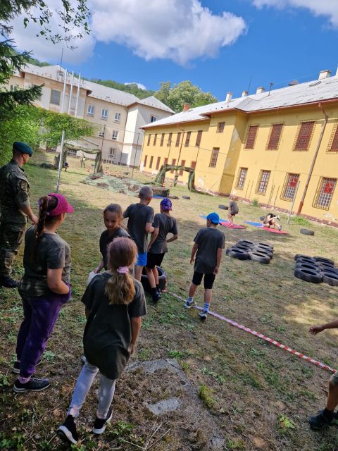 Denný detský tábor po vojensky V termínoch 14.-18.7. a 21.-25.7. 2025 sa po niekoľký ročník 71. prápor podieľal na príprave a priebehu denného detského tábora pre deti profesionálnych vojakov, organizovaného posádkovým klubom v Trenčíne. Na deti počas obidvoch turnusov čakal bohatý program, ako napríklad prednáška o výrobe medu, ochutnávka medu, výroba sviečok a medovníkov, tajné šifry , hlavolamy, vedomostné otázky, pohybové aktivity, plavba na dračích lodiach, orientačné hry, popoludnie s hasičmi, s vojenskou a štátnou políciou, vystúpenie vojenskej hudby a základné techniky bojového umenia – Aikido. Samozrejmosťou boli aj ukážky ručných zbraní, výzbroje a techniky, zásady pri poskytovaní prvej pomoci, obľúbená prekážková dráha a streľba zo vzduchových zbraní. V neposlednom rade musíme spomenúť aj dynamickú ukážku vojenskej polície a ich štvornohých kolegov, ktorá ma u detí každoročne neskutočný úspech. Počas tohto nabitého a zaujímavého programu boli deťom neustále nápomocní profesionálni vojaci a zamestnanci zo 71.prpv a posádkového klubu v úlohe organizátorov a animátorov. Deti boli opäť veľmi spokojné, s novými vedomosťami, kamarátstvami a príjemne „vybláznené“, o čom svedčali aj prázdne taniere počas obedov. Tešíme sa opäť o rok!